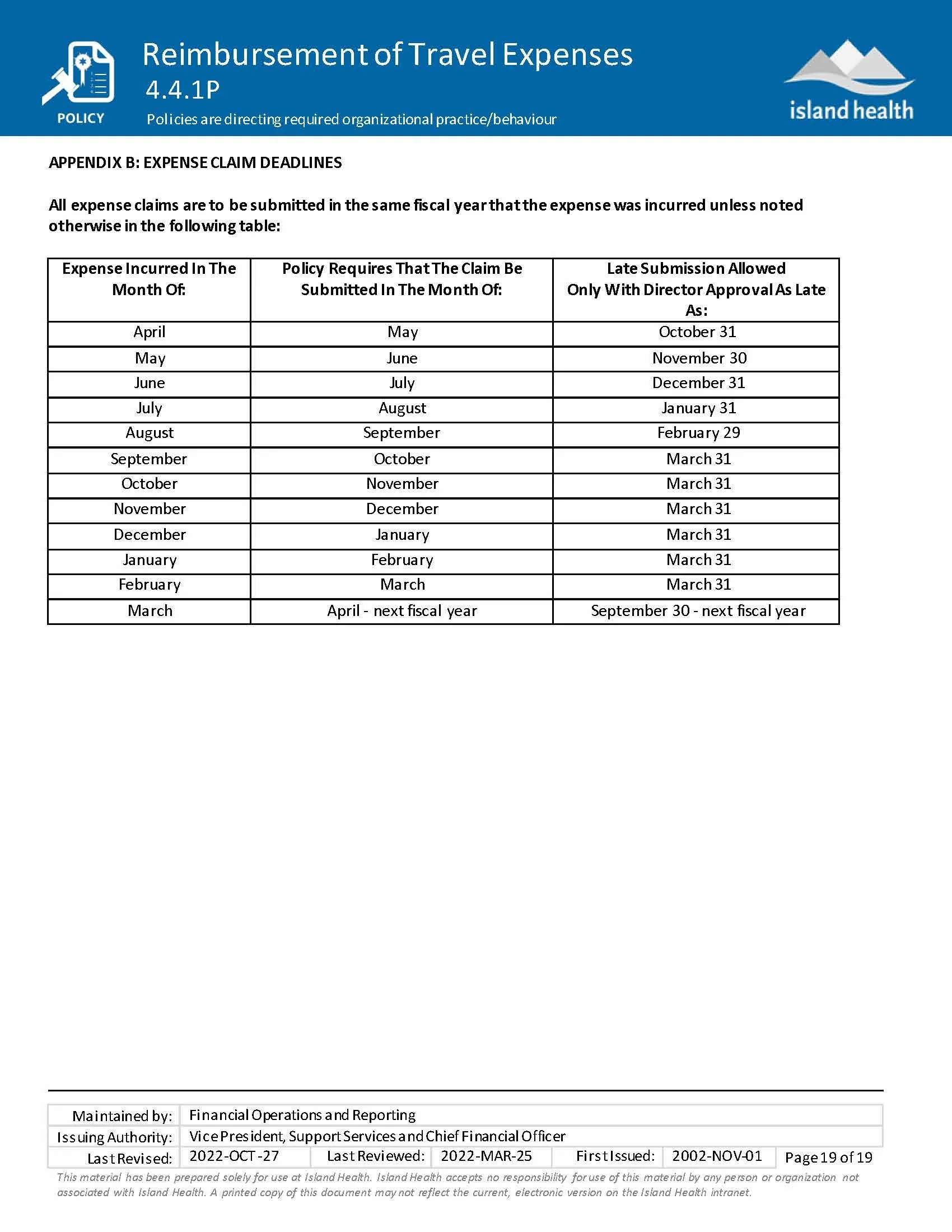 The most recent version of this travel policy can be accessed for the Health Authority internal intranet. This version is current as of October 2022